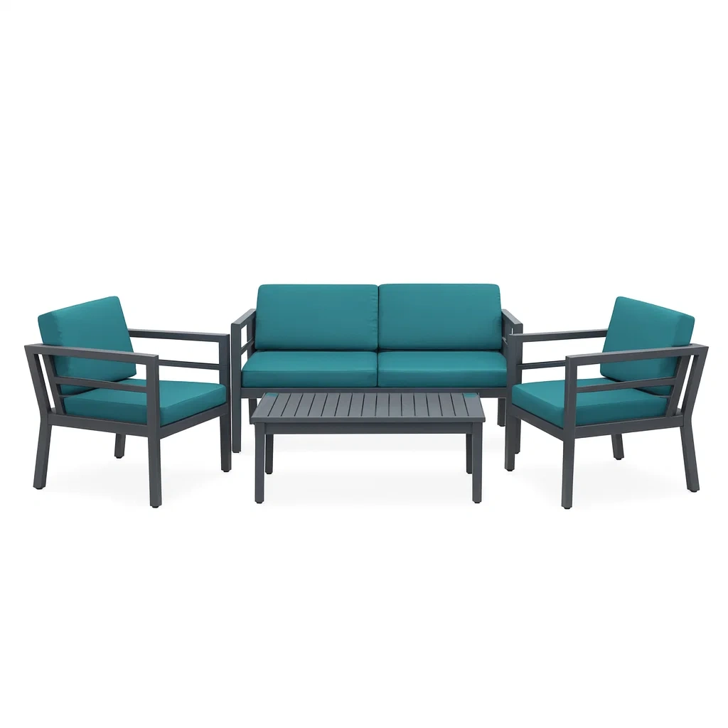 Set da conversazione 4 Pezzi in Alluminio con Cuscini in Poliestere