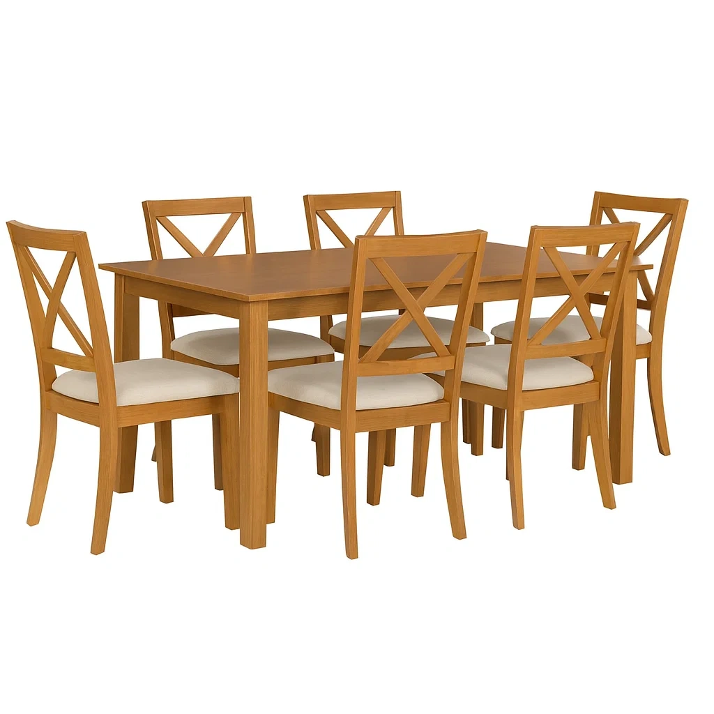 Set da pranzo in Legno con Tavolo Rettangolare e 6 Sedie