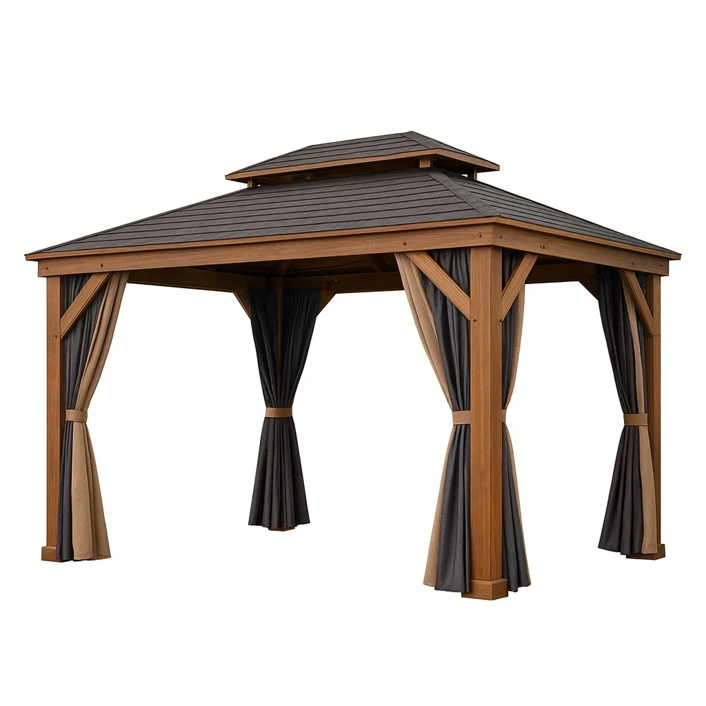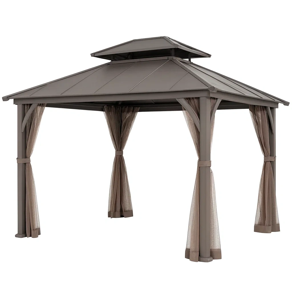 Gazebo in Alluminio con Tetto a Doppio Strato e Tende Laterali