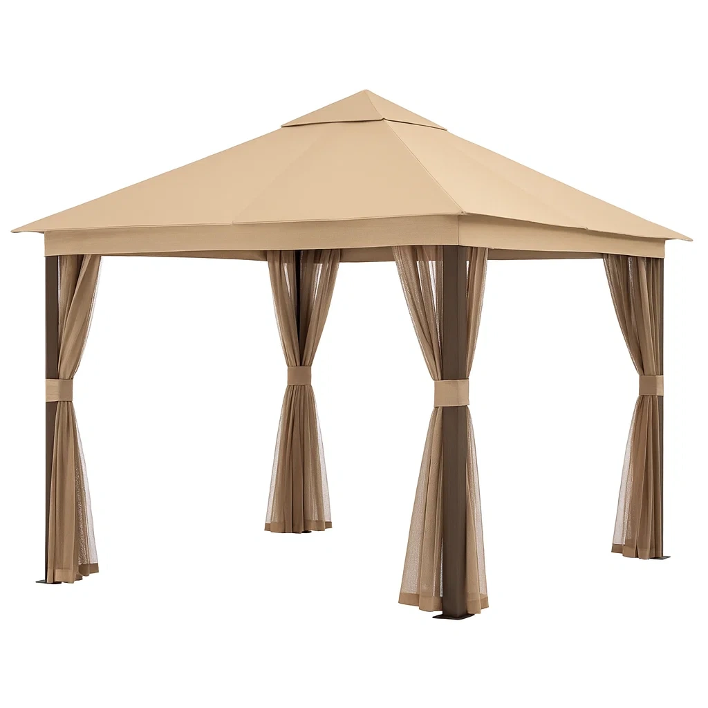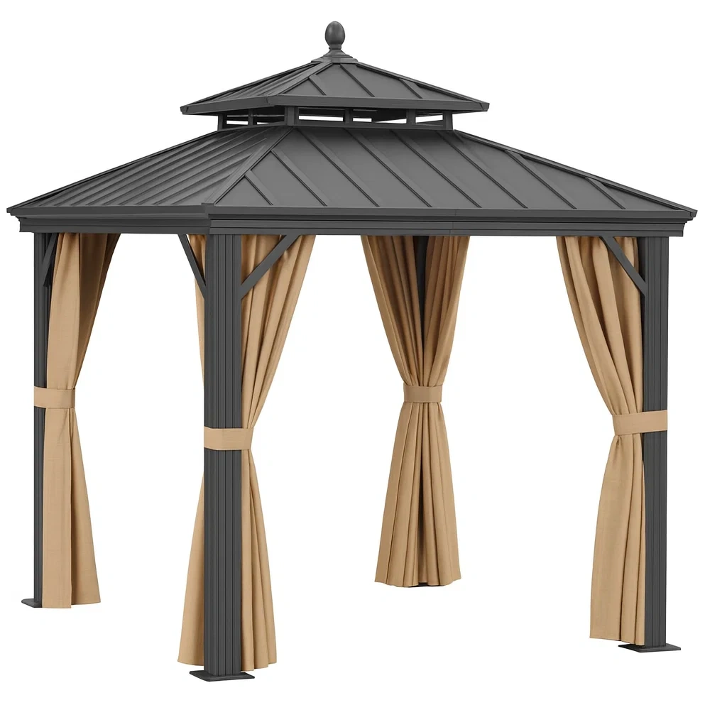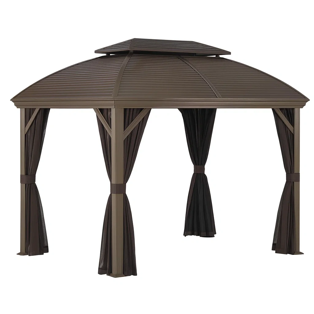 Gazebo in Alluminio con Tetto in Acciaio e Tende in Poliestere